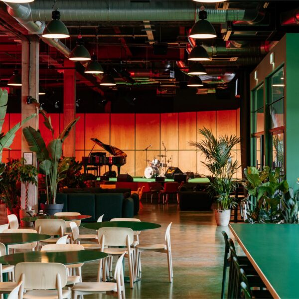 Internally, the space was divided into multiple zones to create distinct yet connected experiences. The event space, currently running the Minecraft exibition, offers a versatile environment for live performances, exhibitions, and activations. Adjacent to this, the bar and restaurant area forms the social heart of the venue, featuring contemporary finishes and integrated seating that encourages flow and interaction.