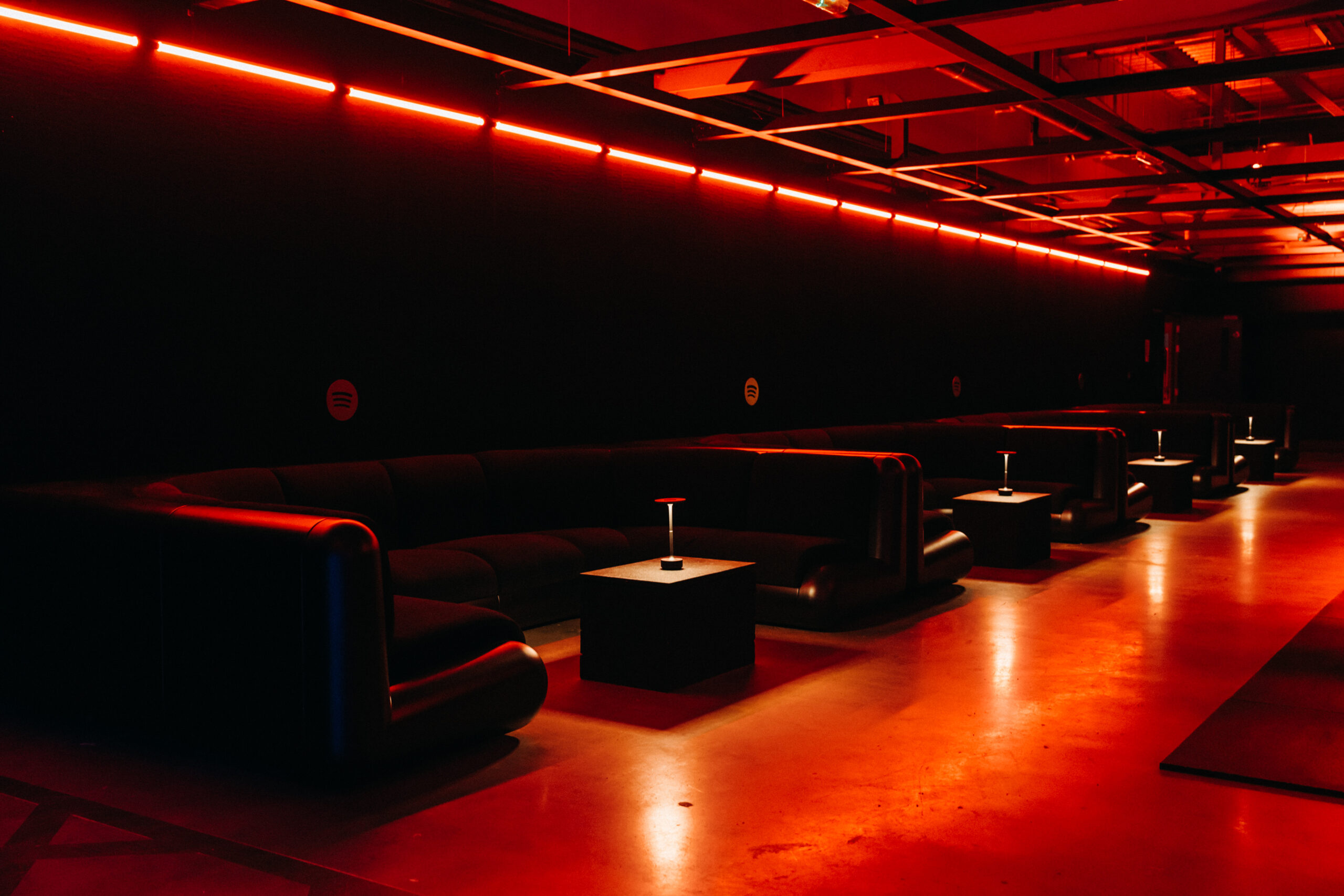 For the new Spotify Lounge at Drumsheds London, creative studio Cake developed a concept that blends industrial rawness with refined detailing — a space designed for artists, guests, and collaborators to experience the venue from a new perspective.